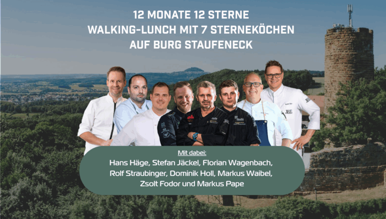 Ein Fest für die Sinne: 8 Meisterköche – 1 unvergesslicher Genussmoment Am Sonntag, den 06. Juli 2025, wird das Burghotel Staufeneck in Salach zum Schauplatz eines besonderen kulinarischen Ereignisses. Im Rahmen des Projekts „12 Monate 12 Sterne“ findet dort ein exklusiver Walking Lunch statt – mit sieben ausgezeichneten Sterneköchen aus Deutschland und der Schweiz. Das […]