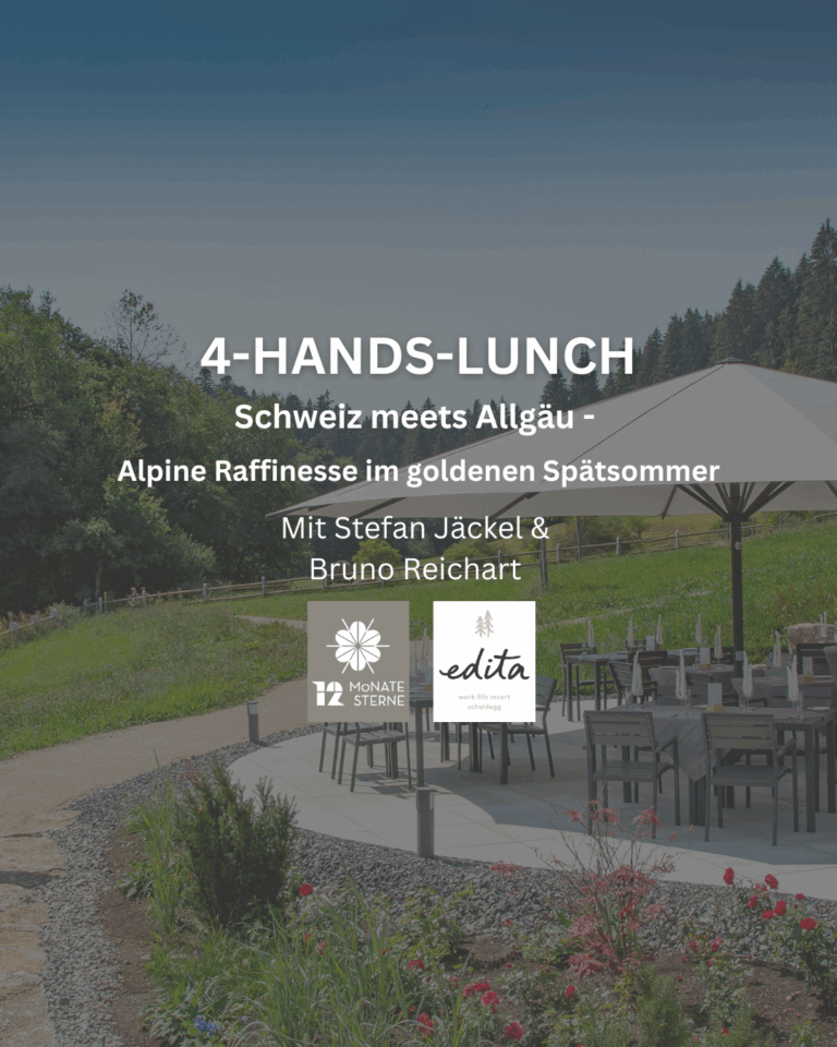 12 Monate – 12 Sterne geht in die fünfte Runde! Im September erwartet Feinschmecker ein ganz besonderes Highlight unserer Eventreihe: Ein exklusiver 4-Hands-Lunch im stilvollen Ambiente des Hotel edita in Scheidegg – ein kulinarisches Gipfeltreffen, das Genießerherzen höherschlagen lässt. Am Sonntag, den 21. September 2025, vereinen sich zwei Meister der Kochkunst: Stefan Jäckel, Sternekoch aus […]