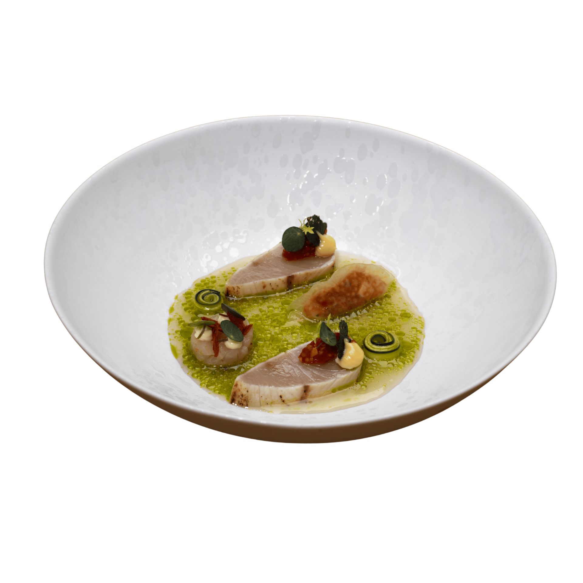 Das stilvolle Ambiente des Restaurants, mit hohen Decken, großen Rundbogenfenstern und eleganter Einrichtung, schafft eine perfekte Balance zwischen Tradition und Moderne. Besonders beeindruckend ist die Terrasse, die einen atemberaubenden Blick auf die Limmat und die historischen Gebäude der Altstadt bietet. Für ein außergewöhnliches Erlebnis können Gäste den Chef's Table direkt in der Küche buchen und die Zubereitung der Gerichte hautnah miterleben.