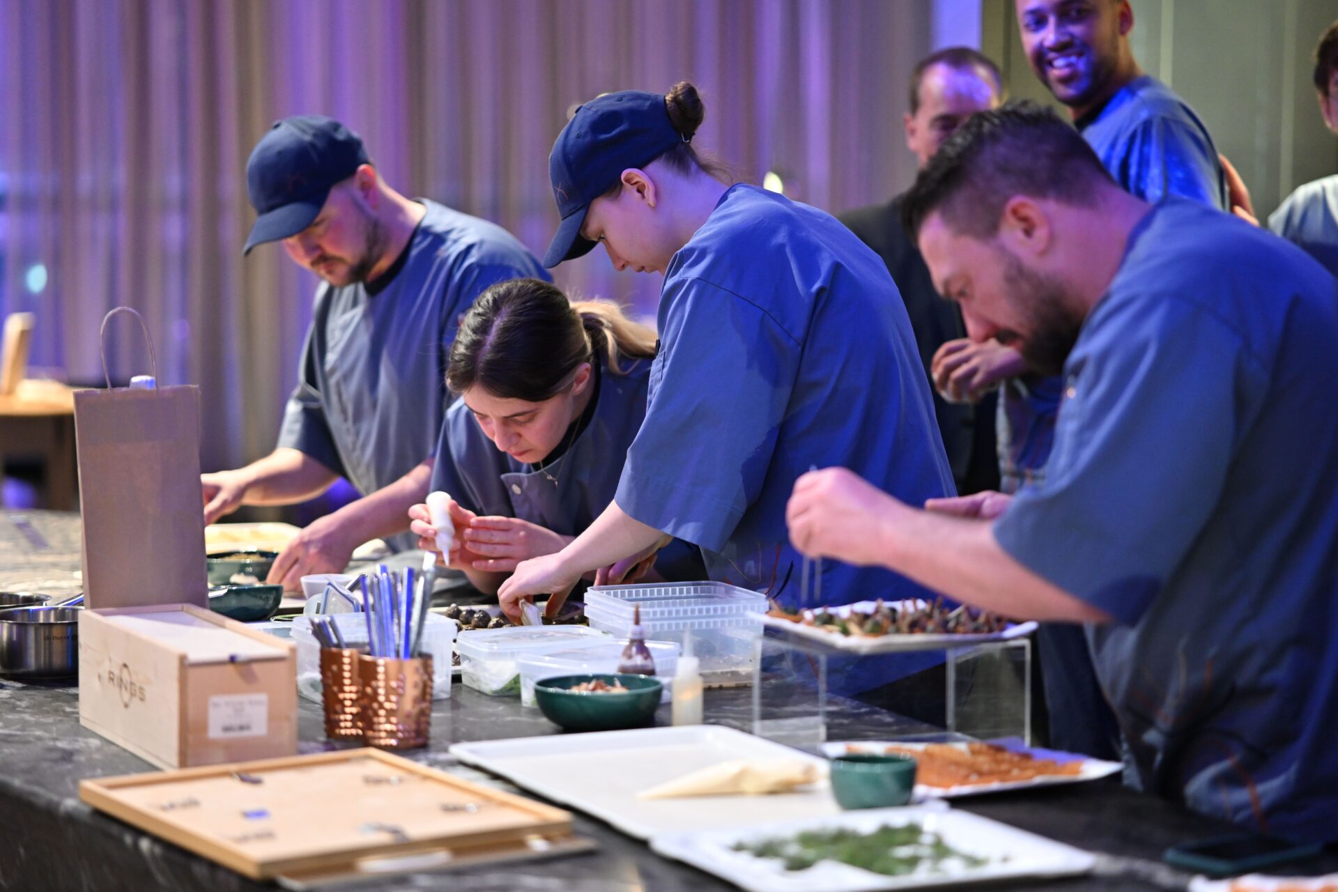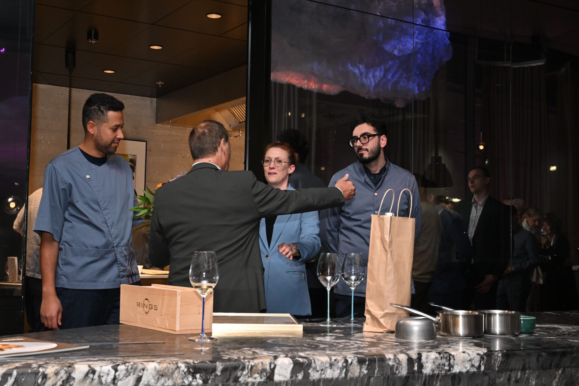 Mit nur 42 Gästen entstand eine persönliche und exklusive Atmosphäre, die Einblicke in die Arbeit von Jens Madsen und seinem Team erlaubte. Begleitende Weine und der Champagner-Aperitif rundeten das kulinarische Erlebnis perfekt ab.