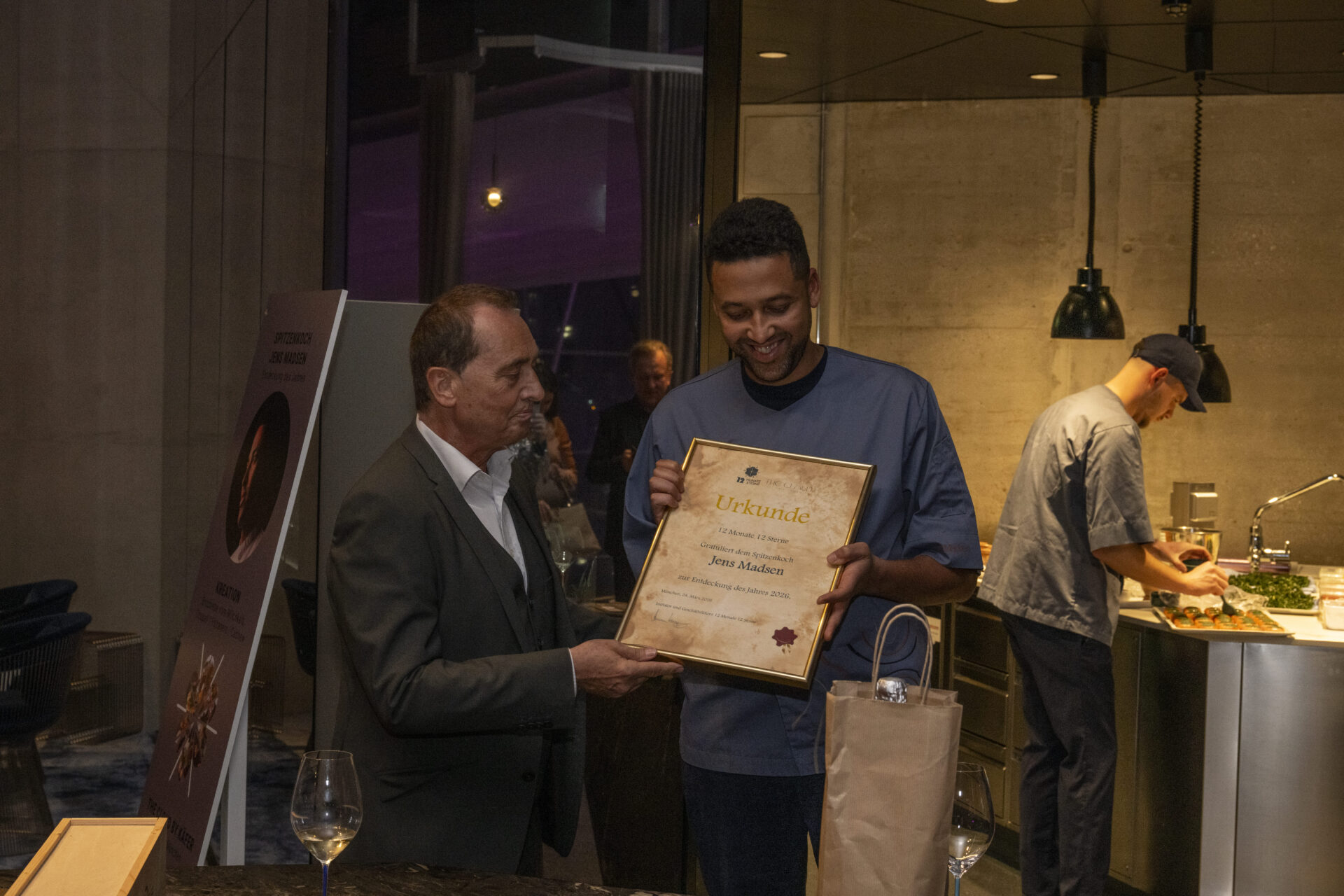 Am 24. März 2026 begeisterte Spitzenkoch Jens Madsen die Gäste im THE CLOUD by Käfer in der BMW Welt München. Im exklusiven Rahmen präsentierte er ein 6-Gang-Menü, das seine kreative Küche und internationale Einflüsse eindrucksvoll zeigte. Höhepunkt des Abends war die offizielle Auszeichnung als ‚Entdeckung des Jahres 2026‘ von 12 Monate 12 Sterne – ein kulinarisches Erlebnis, das den Gästen noch lange in Erinnerung bleiben wird.